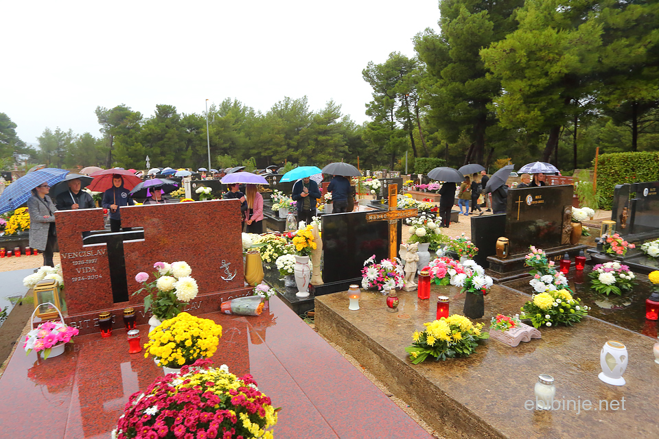 Jak pljusak i vjetar vjerojatno je pogodovao manjem broju ljudi koji su danas došli na groblje, no usprkos vremenskim nepogodama, bilo je dosta onih koji su se došli pomoliti na grobovima na svojih najmilijih.