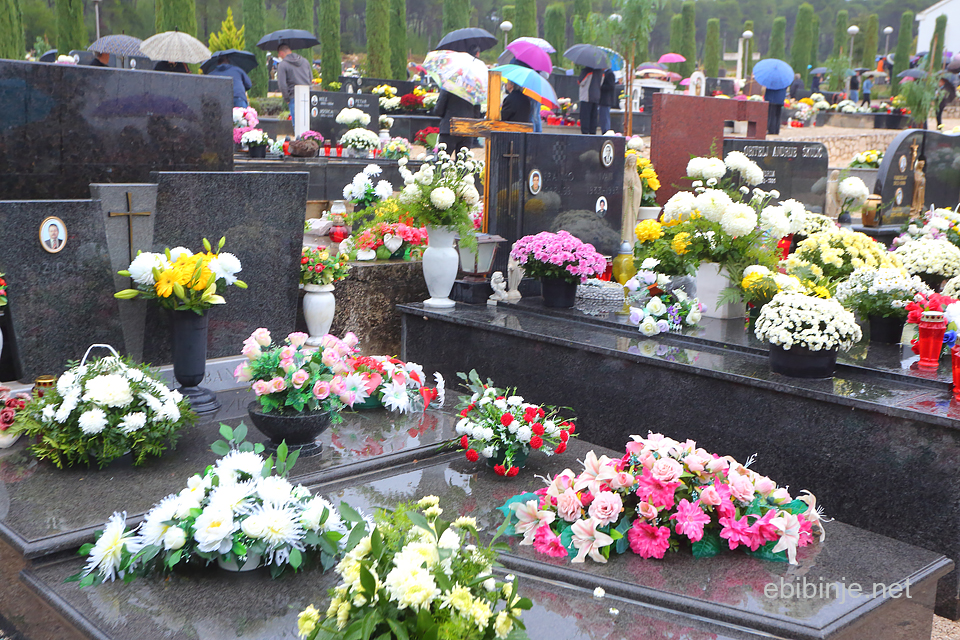 Katolički blagdan Svih svetih privukao je, kao i uobičajeno, veliki broj ljudi na bibinjska groblja. Grobovi su, u najvećoj mjeri, za tu priliku uređeni, gotovo da nije bilo moguće vedeti ni jedan grob, ni jednu grobnicu, koja nije bila ukrašena ili bogatim aranžmanima ili tradicionalno krizantemama. Ipak, u odnosu na godinu prije, cvijeća je bilo manje.